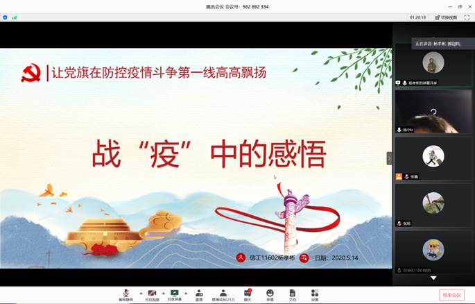 (通讯员 张鑫)为深入学习贯彻落实中央关于统筹推进疫情防控和经济社会发展的决策部署,切实做好本科生思想政治教育工作,引导学生做有理想、有本领、有担当的社会主义新青年,5月14日晚19:00,电信学院召开学生战“疫“故事分享会,党委副书记郭启炜、全体辅导员、全体学生党员及积极分子参加了此次大会。