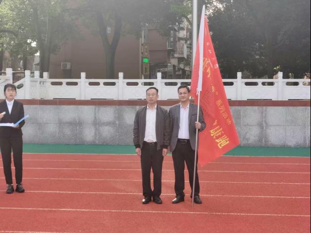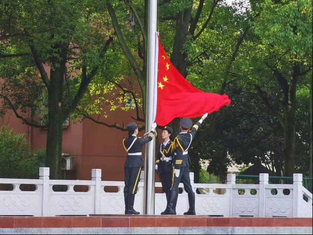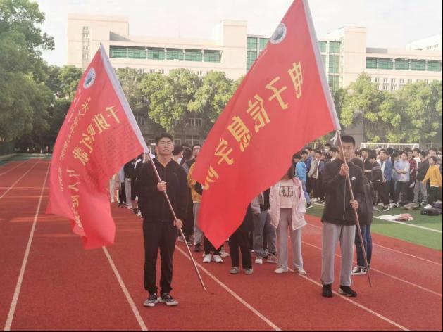 活动伊始,郭书记对全体20级本科生进行防溺水防电信诈骗的思想教育 并强调了英语四级考试的重要性。随后,辅导员万谦组织学生合唱红歌《歌唱祖国》,歌声悠扬响亮,情感饱满。紧接着,随着铿将有力的步伐,国旗护卫队在全体人员的注视中护送国旗来到国旗台,带领全体人员举行庄严肃穆的升旗仪式。仪式过后,由学生代表胡斌斌发言,其中他向去世的袁隆平致敬,并提出希望大家都能学习前辈崇高的精神与品性,成就更好的自己。发言完毕,伴随着热烈的掌声,机械学院竺书记向我院授予了“千班唱红歌,万人健康跑”旗帜。在高举飘扬旗帜的旗手的领跑下,在场学生紧随其后,完成本次健康跑活动。至此,西校区升旗仪式及“千班唱红歌,万人健康跑”活动顺利结束。