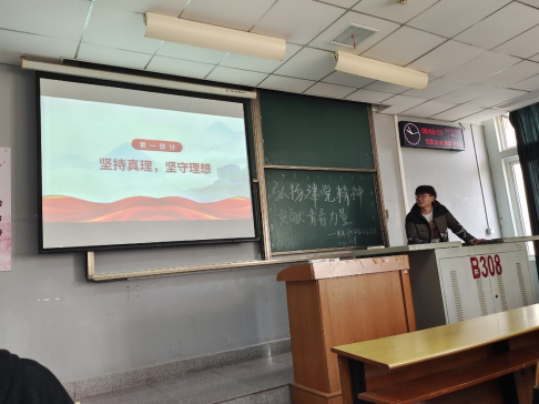 会议伊始,高苗苗同学分别从“坚持真理、坚守理想”、“践行初心、担当使命”、“不怕牺牲、英勇斗争”以及“对党忠诚、不负人民”四个方面展开叙述。吕国航、刘雨欣等人带领其他同学重温革命经典、不忘革命精神、对祖国日益昌盛的现况表达自己的感受。本次团委班团会通过PPT、视频以及发言互动等多种形式引导我们青年学生切实增强听党话、跟党走的思想自觉和行动自觉。经过这次班团会,我们将会继续开展党史学习教育,增强我们青年学生的信念同时发挥青年团员的先进性,为身边的同学带来力所能及的帮助。本次会议上每一位学生都认真学习了《在全团开展“学党史、强信念、跟党走”学习教育的通知》等文件内容以及新民主主义革命、社会主义革命和建设、改革开放、中国特色社会主义新时代等专题。重点学习了习近平在西藏考察时的重要讲话精神、习近平在中华人民共和国恢复联合国合法席位50周年纪念会议上的重要讲话精神、习近平在东营考察调研、党的十九届六中全会主要文件精神等内容。