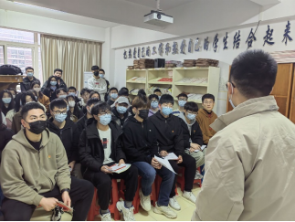 3月23日晚,分党委副书记郭启炜以线上线下相结合的方式召开疫情防控政策宣讲会,传达学校关于近期校园管控的最新要求并听取新风公寓学生对学校管理政策的意见,辅导员万谦、沈马锐一同参加,2019级、2020级各班班委参会,各年级其他学生线上参会。