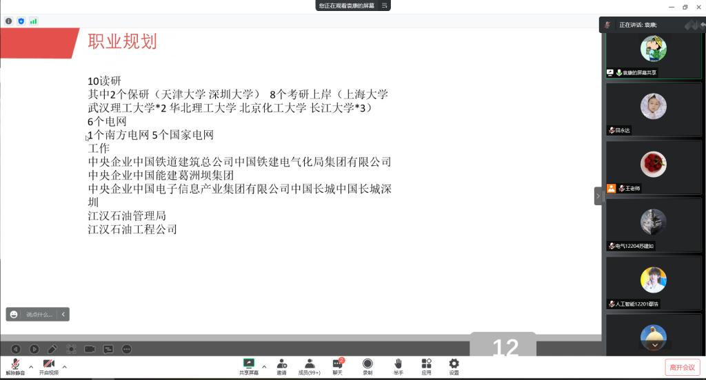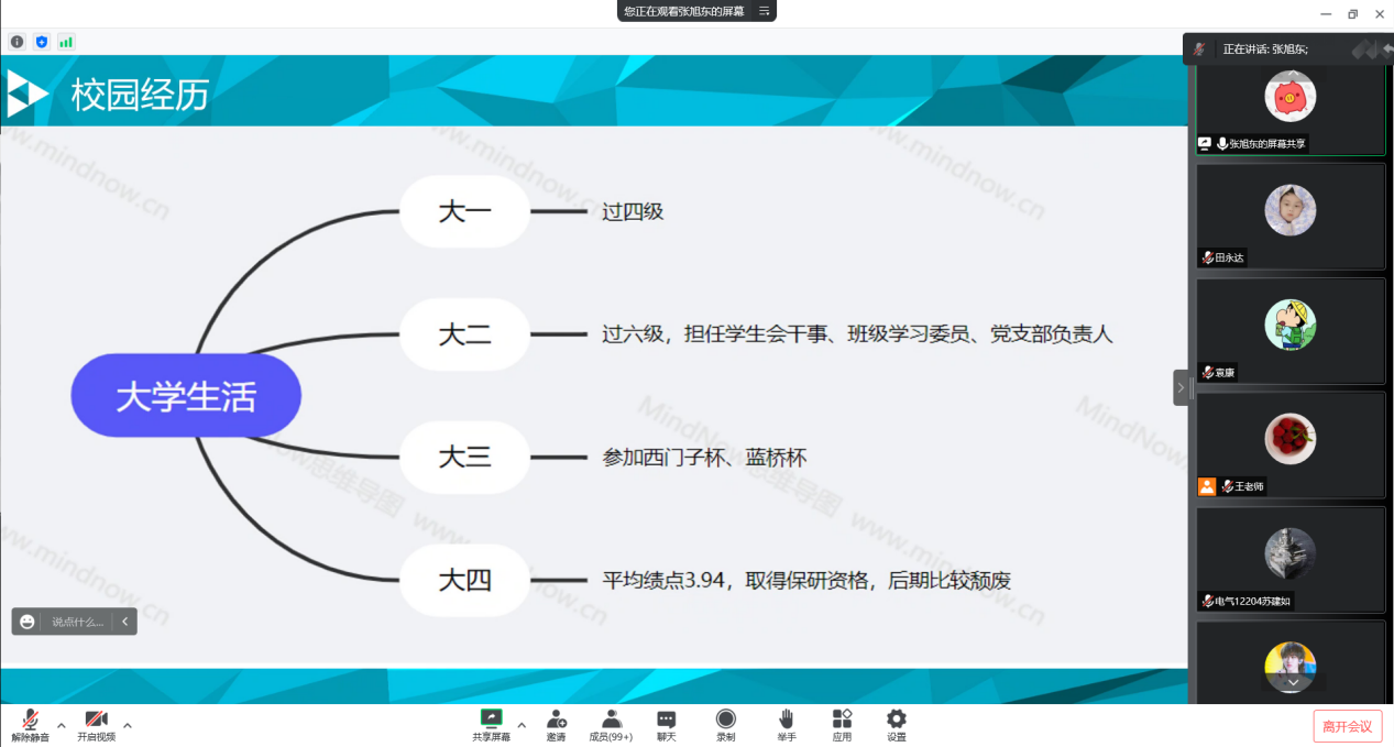 9月7日晚,邀请了四位2018级已经毕业袁康、付博文、李苏、张旭东这不同专业的四位校友在新生中开展“2022年学生生涯规划教育系列活动”,主要内容包括:生涯规划、考研指导、职业能力培养、职业素质提升等方面的教育,解答了新生关于入党、保研、就业、如何平衡学生干部工作与学习等方面的问题。