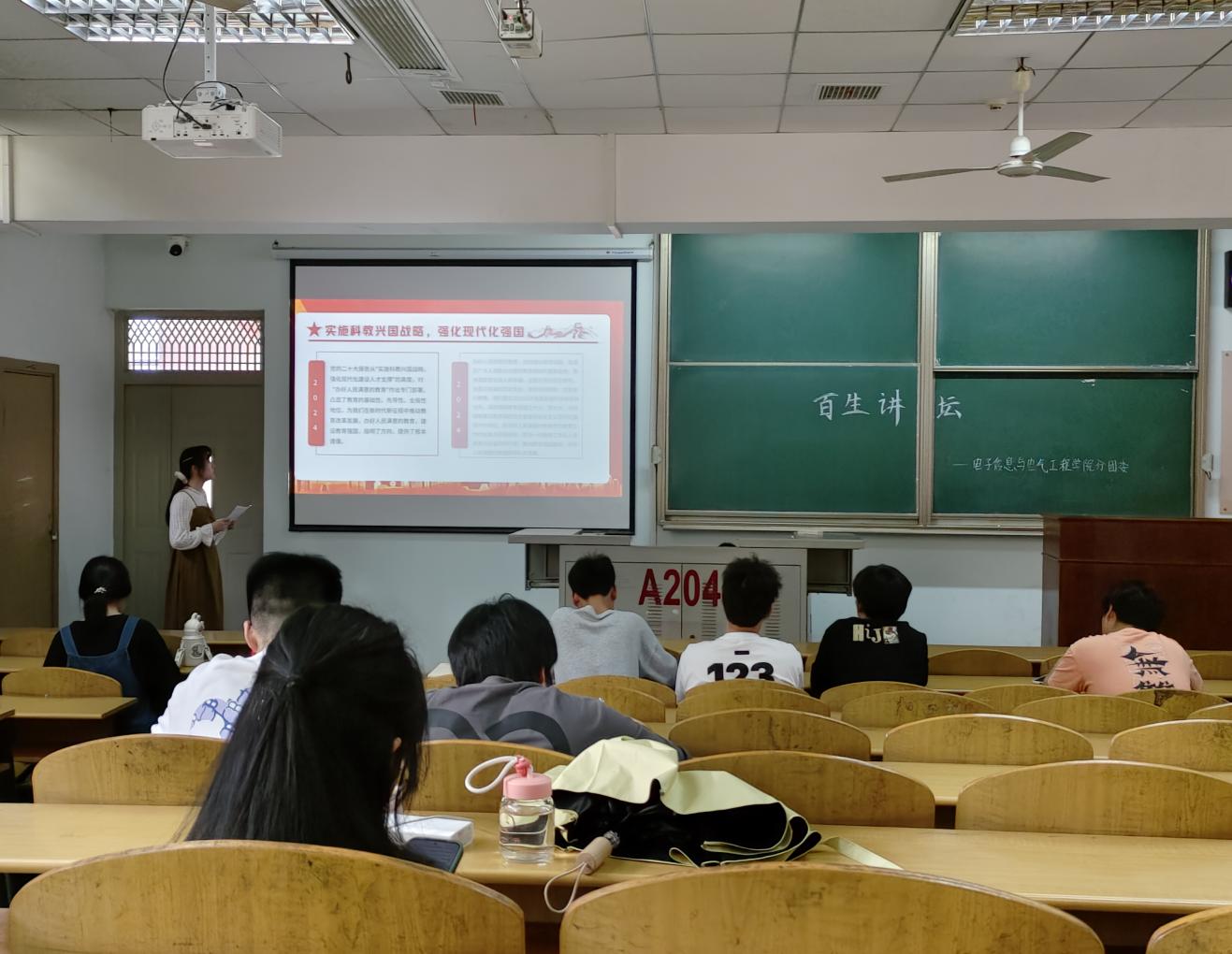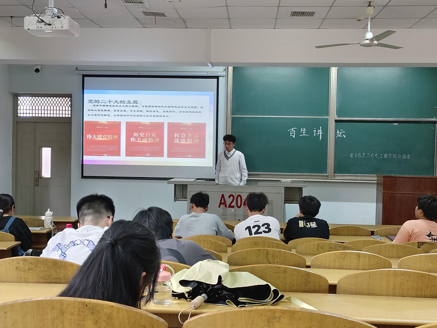 (通讯员 叶顺)为深入学习贯彻习近平总书记关于青年工作的重要思想和关于教育工作的重要论述,坚持用习近平新时代中国特色社会主义思想武装头脑、铸魂育人,我院积极落实校团委决定,于4月18日在13教A204组织开展百生讲坛活动。