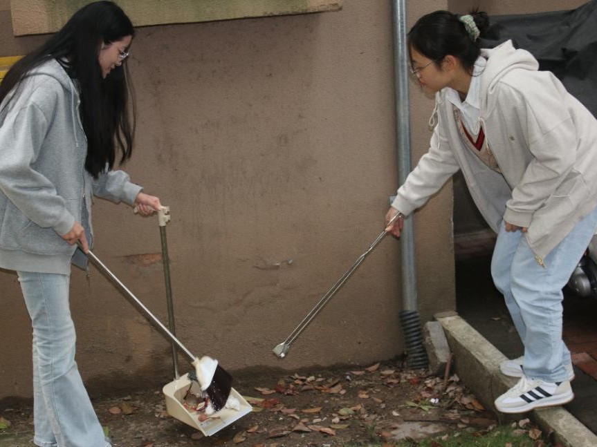 东西校区分别由颜国琼老师、刘心悦老师带队。同学们热情高涨,积极参与到劳动中,他们或弯腰捡拾垃圾 、或挥动扫帚清扫地面、或合力搬运废弃物。经过一个多小时的努力,区域的环境得到了显著改善,地面干净整洁,草坪绿意盎然,为校园增添了一道亮丽的风景线。