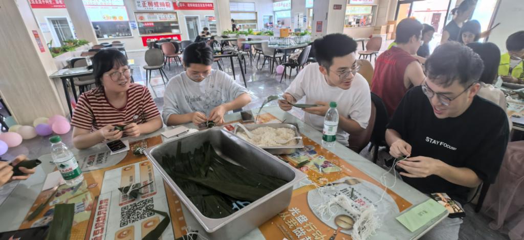 粽香传情,师生们品尝着自己亲手包制的粽子,开启了一场温馨的“成长茶话会”。大家围绕学业压力、职业规划、人际交往等话题畅所欲言。面对学业压力,有同学分享了自己的时间管理技巧和学习方法;在职业规划方面,学长学姐们结合自身经历,为学弟学妹们提供了宝贵的建议;谈及人际交往,大家纷纷讲述着自己在与同学、老师相处过程中的趣事和感悟,互相学习如何更好地沟通与理解。老师们也认真倾听同学们的心声,给予专业的指导和温暖的鼓励,现场气氛热烈而融洽。