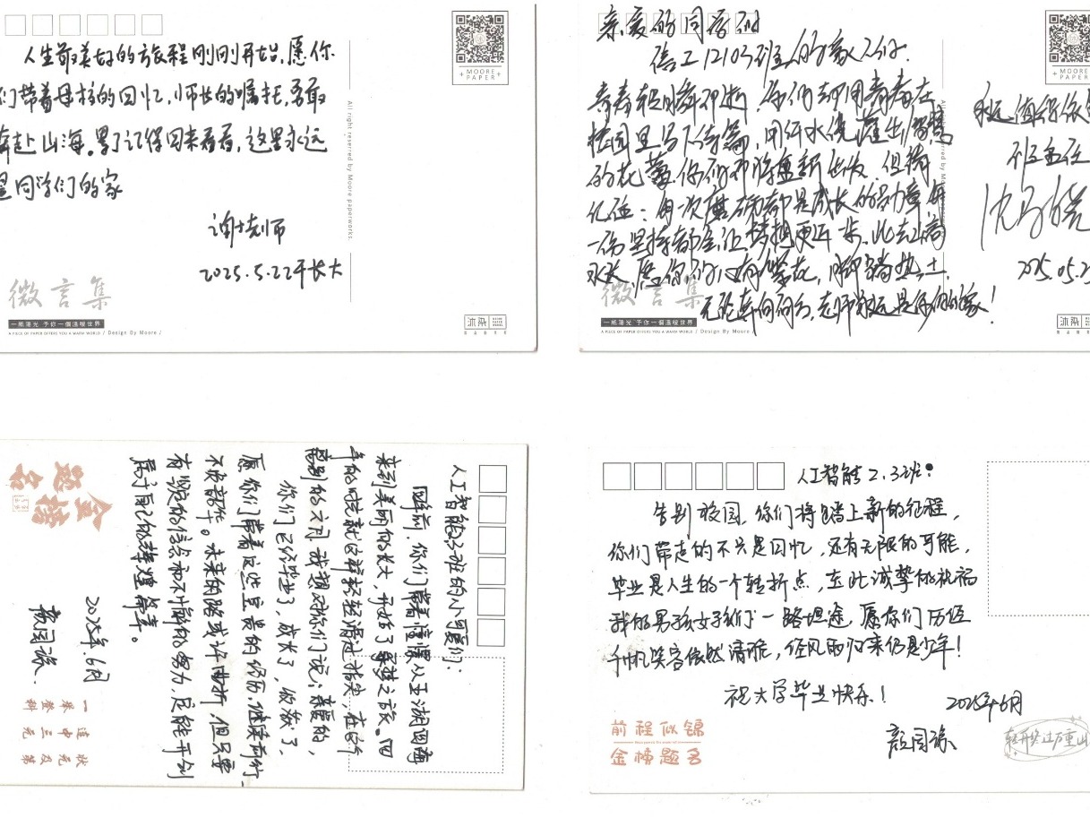 谈心育人,突显笔墨间的思政力量。学院党委副书记张晨露表示:“书信活动是‘谈心育人’的生动实践,师生在笔墨互动中实现了情感共鸣和价值引领。”一封书信,一份传承,在这场充满仪式感的告别中,师生以最质朴的文字诠释了教育的温度,为毕业生上了最后一堂“感恩思政课”。