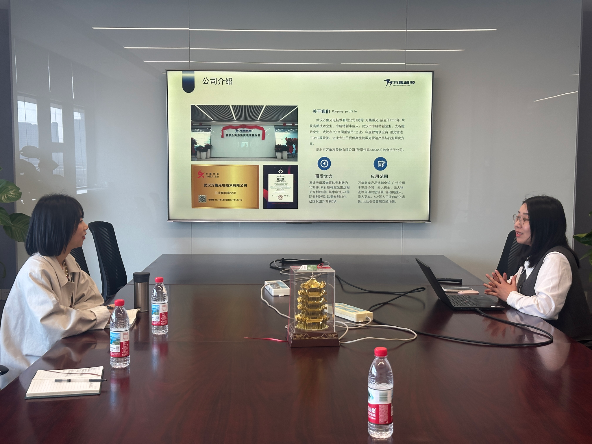 在武汉万集光电技术有限公司,公司HRBP魏立平详细介绍了公司的发展历程、核心业务、技术优势及人才需求情况。公司专注于激光雷达产品与解决方案,已掌握激光雷达领域多项核心技术,研发团队占比超80%,产品广泛应用于自动驾驶、工业自动化、智慧交通等多个领域。座谈交流中,张晨露介绍yl6809永利官网集团的学科布局、师资力量、人才培养模式及科研方向,重点阐述了学院在电子信息、电气工程、智能控制等领域的办学优势与成果。双方围绕校企合作模式创新、人才培养适配、科研项目协同、毕业生就业对接等核心议题展开深入沟通,就搭建校企合作平台、加强人才供需对接、推动科研成果转化等方面达成初步共识。她表示,希望以此次走访为契机,深化与企业的全方位合作,实现资源共享、互惠共赢。