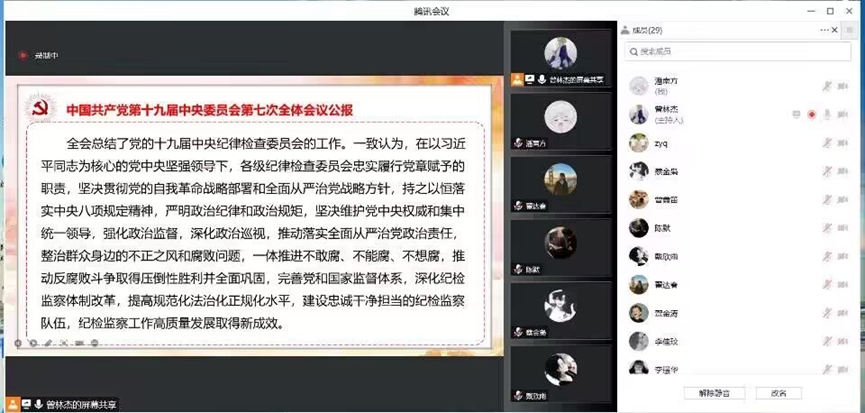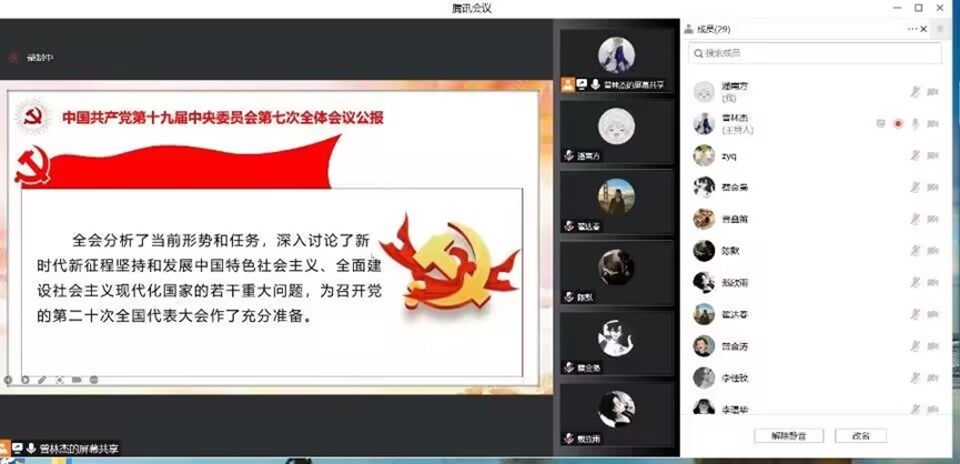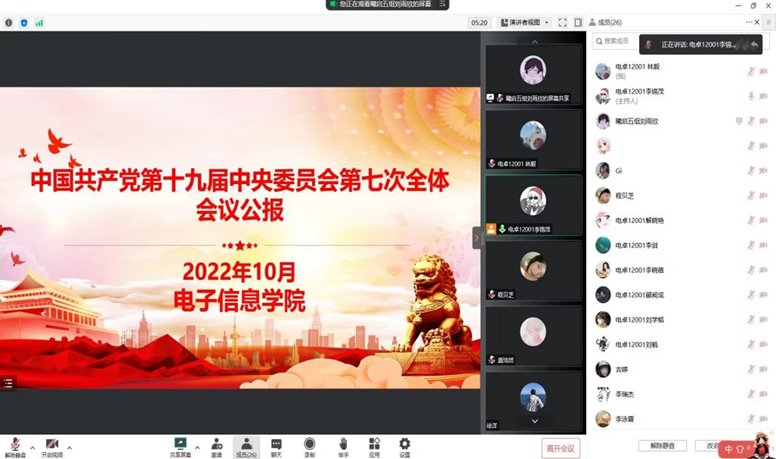 (通讯员 曾诗玉)为深入学习贯彻习近平总书记重要讲话精神,领悟中国共产党取得的伟大成就,为党的二十大营造浓厚的学习氛围,电子信息学院组织开展了中国共产党第十九届中央委员会第七次全体会议公报专题学习。