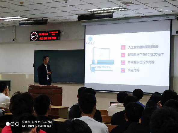 2023年9月21日下午,谢凯教授在12教202为电信学院师生奉献了一场精彩的讲座:智能科学下的SCI论文与研究生学位论文写作技巧探讨。主管研究生教学的魏勇院长主持讲座,我院研究生导师、研究生和部分本科生参加了此次讲座。讲座持续一个半小时,从人工智能领域最新进展、智能科学下的SCI论文写作、研究生学位论文写作、交流讨论等四个方面展开。