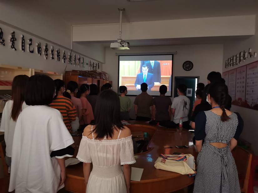 202098日上午10点,全国抗击新冠肺炎疫情表彰大会在京举行。电信学院组织本科学生党员在党员活动室收看视频直播.同时,研究生支部学生党员也通过网络方式同步收听了大会直播。
