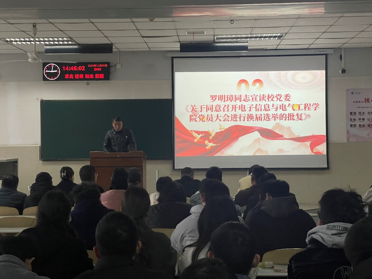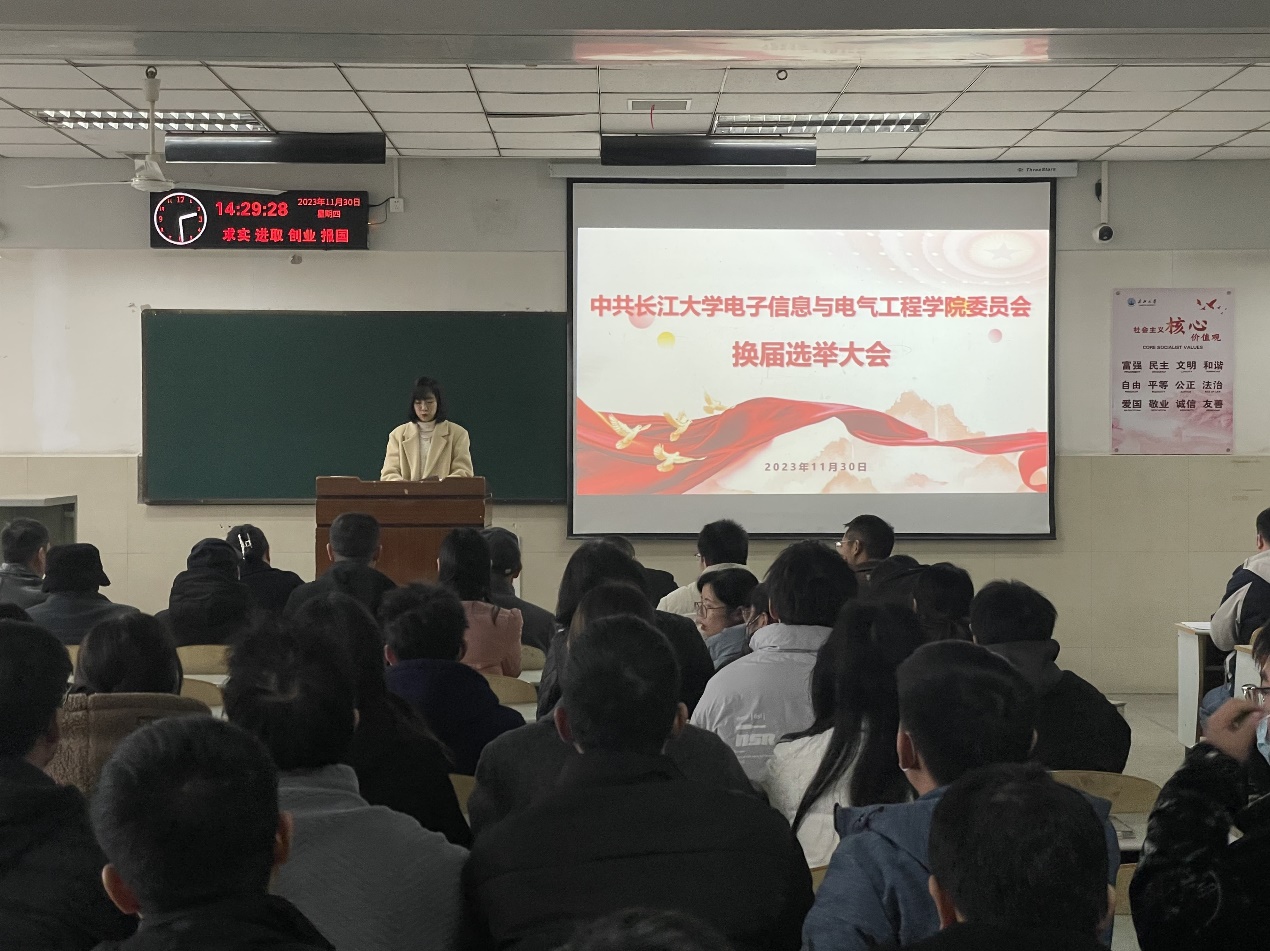 11月30日下午,经校党委批准,yl6809永利官网集团在12教304召开党员代表大会,举行学院党委换届选举。学院领导班子、全体师生党员参会,会议由学院党委副书记张晨露主持。