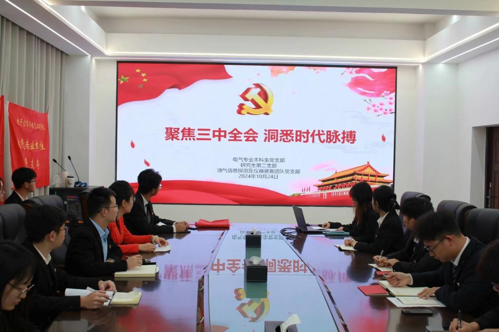(通讯员 吴思哲/文 袁慧琳/摄)“这次主题党日活动别开生面,紧密结合党的二十届三中全会精神,为大家提供了宝贵的学习机会,大家受益匪浅。”“本次党建共建活动,不仅增默契,更显实效。”10月24日下午,学院电气专业本科生党支部与研究生第二党支部、油气信息探测及仪器装备团队党支部联合开展“聚焦三中全会 洞悉时代脉搏”的主题党日活动,让学生通过这堂生动的“大思政课”更加明白个人命运与国家发展的紧密相连,激发为实现中华民族伟大复兴的中国梦而努力奋斗的决心和信心。