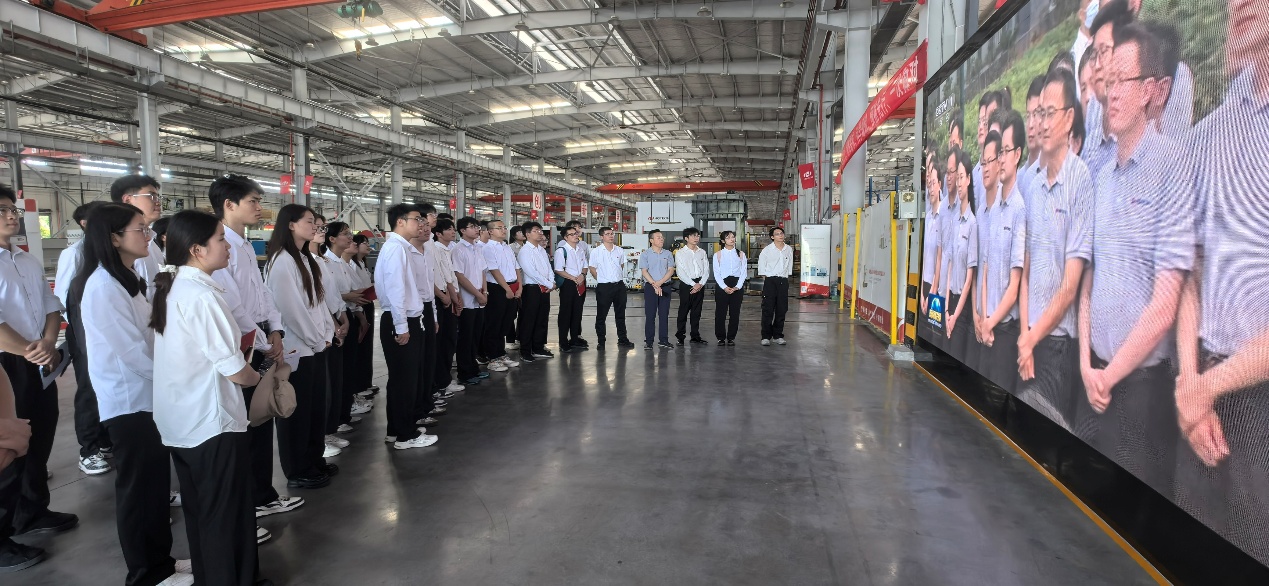 在任拥军副总经理的带领下,师生一行先后参观了华工科技激光高端装备制造车间、智能制造未来产业园、激光科技馆。大家详细了解了华工激光的发展历程与核心技术成果,从高精度激光切割设备到微电子领域精密制造工艺,从智能装备生产线到绿色化技术应用,企业讲解员通过实物展示与动态演示,生动呈现了激光技术在电子信息、汽车制造、航空航天等领域的创新应用场景。“激光技术的迭代速度远超想象,尤其在芯片封装、柔性显示等细分领域,国产化突破令人振奋!”大家纷纷感叹道。