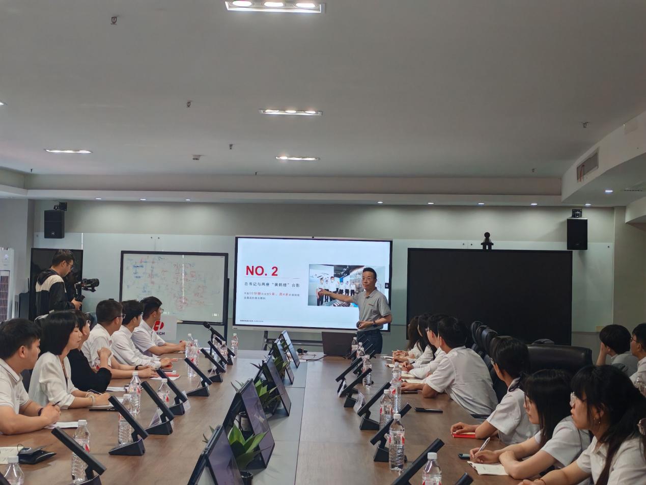 参观结束后,任拥军副总经理在会议室为大家讲授了另一堂生动的思政课。他深情回顾了2022年6月习近平总书记考察华工科技时的重要讲话精神,动情地讲述了习近平总书记“六次驻足、七分钟凝视”的动人瞬间。他表示:面对激烈的国际科技竞争,突破“卡脖子”关键核心技术迫在眉睫。我们必须牢记习近平总书记的殷殷嘱托,坚定不移走自主创新之路,加快实现科技自立自强。这番话引发现场强烈共鸣。