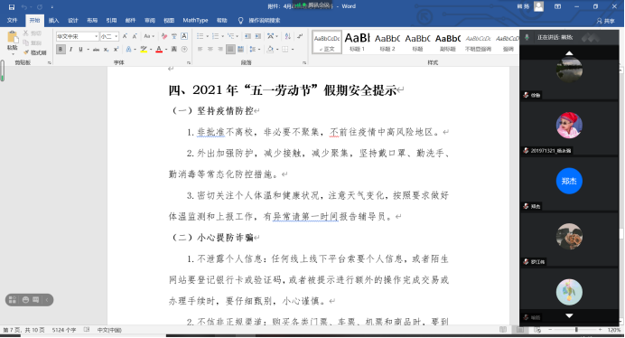 最后,学生会成员领读了五一劳动节假期安全须知,加强了研究生们对安全知识的学习。