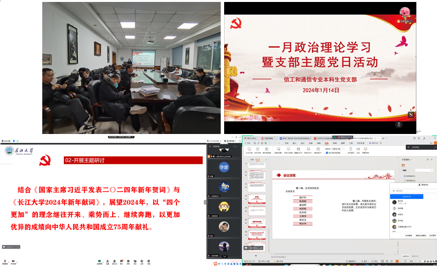 学院各党支部也于1月18日前按要求开展了本月主题党日活动,并在会上进行了2023年度民主评议党员。全体党员一起重温入党誓词,交纳党费,诵读党章。集体学习后,支部党员开展“讲微党课”活动,并后结合《国家主席习近平发表二〇二四年新年贺词》与《yl6809永利集团2024年新年献词》,展望2024年。支部党员认真总结了2023年的学习工作和生活,并严肃开展了批评与自我批评。