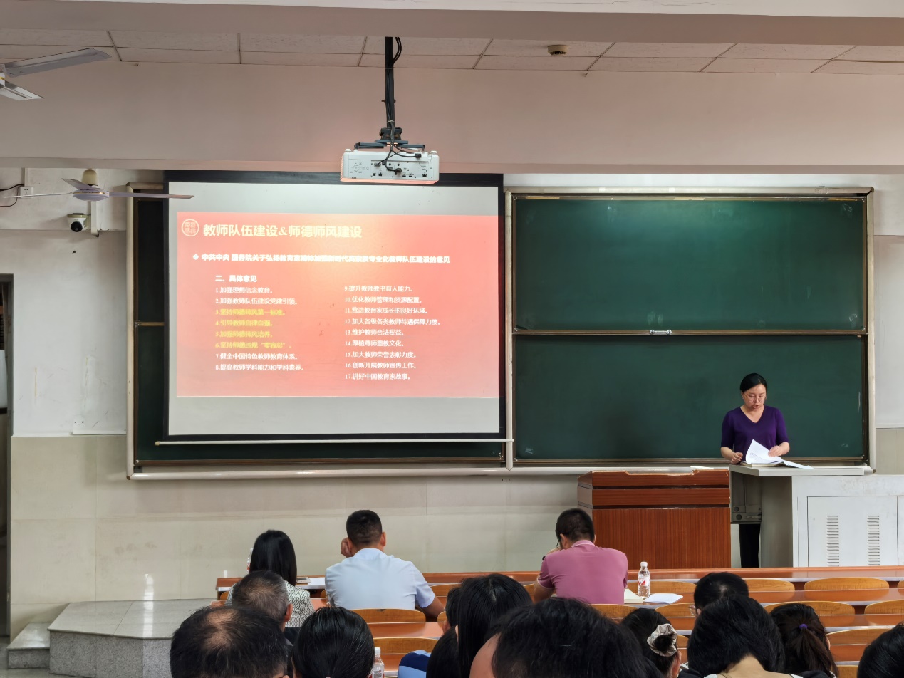 理论学习环节,全体教职工一同学习了习近平总书记在全国科技大会、国家科学技术奖励大会、两院院士大会上的重要讲话,学习了习近平总书记发表在《求是》杂志的重要文章《培养德智体美劳全面发展的社会主义建设者和接班人》,学习了习近平总书记关于党纪学习教育的重要指示以及中共中央、国务院关于弘扬教育家精神加强新时代高素质专业化教师队伍建设的意见等内容。