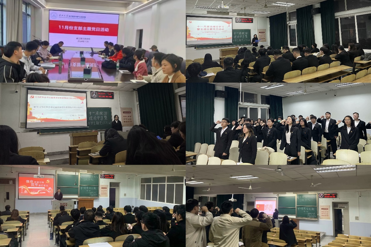 为深入学习领会党的二十届三中全会精神,学习贯彻习近平新时代中国特色社会主义思想,进一步激发党员同志的使命担当,进一步提高师生的政治素养,根据学校安排,学院于近期组织开展了11月政治理论学习与支部主题党日活动。