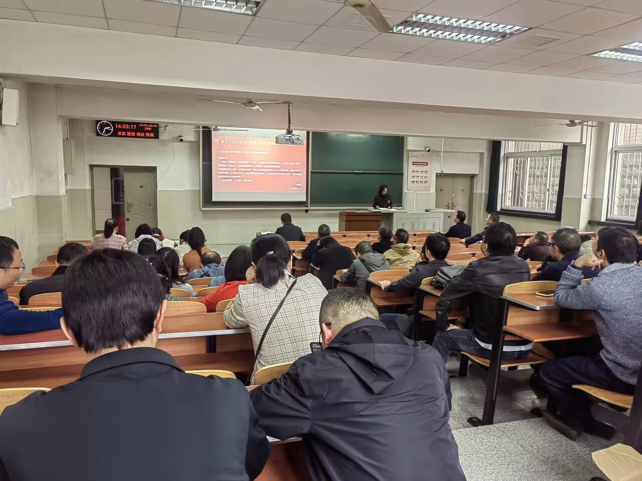 11月14日下午,学院召开教职工大会,党委书记郭梅带领大家集中学习了习近平总书记系列重要讲话和指示批示精神,主要是:习近平总书记在中共中央政治局第十七次集体学习时的重要讲话、习近平总书记关于促进高质量充分就业的重要讲话、习近平总书记在省部级主要领导干部学习贯彻党的二十届三中全会精神专题研讨班开班式上的重要讲话及习近平总书记关于教育的重要论述,还学习了习近平总书记给中国科学院院士、清华大学教授姚期智的回信习近平总书记给中国传媒大学全体师生的回信精神,会上还学习了习近平总书记关于宣传思想文化工作的有关要求和论述,结合意识形态领域工作进行了学习教育。