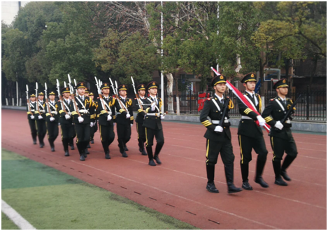 7:00,升旗仪式活动第一项,主持人宣布国旗升旗仪式正式开始。yl6809永利集团国旗护卫队旗手们手握着国旗、穿着统一的军装,迈着整齐的步伐朝升旗台走来。随着升旗手振臂一挥,鲜艳的五星红旗伴随着高昂的中华人民共和国国歌冉冉升起,全院师生行注目礼。