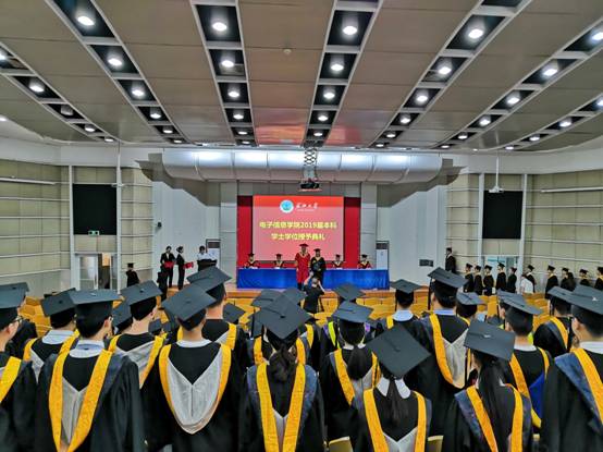 仲夏六月,栀子花开,电信学院又迎来一年的毕业季。6月18日下午2点,我院2019届本科学士学位授予典礼在12教405报告厅举行。yl6809永利集团校长冯征,电信学院院长熊晓东、副院长罗明璋、李涛、教师代表谢凯、学院党委副书记郭启炜、全体辅导员老师参加典礼,共同见证电信学院2019届本科毕业生顺利毕业,开启人生新征程。