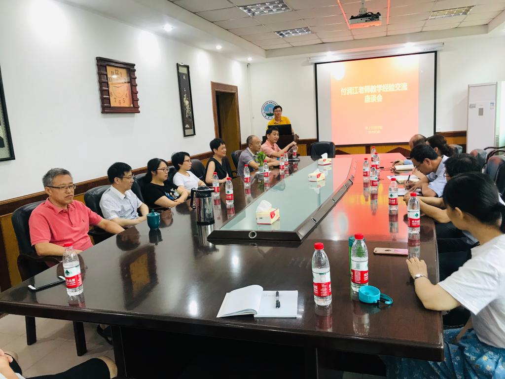 2019年7月8日上午,学院召开了付润江老师从教经验交流会,全体院领导、基础部教师代表以及国家级实验示范中心教师代表参加会议。
