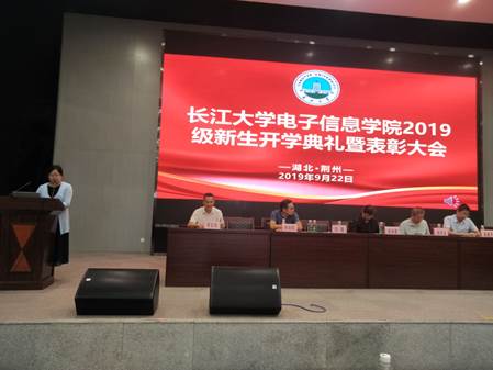 通讯员(陈荣)2019年9月22日15:00~18:00,电子信息学院2019级新生开学典礼暨军训表彰大会于农科大楼1058报告厅成功举行。院长孙祥娥教授、党委书记刘逸、党委副书记郭启炜、电子信息系主任邹学玉教授、仪器系主任吴爱平副教授、电气系主任杨旭辉副教授及2019级全体本科生出席此次会议。会议由郭启炜副书记主持。