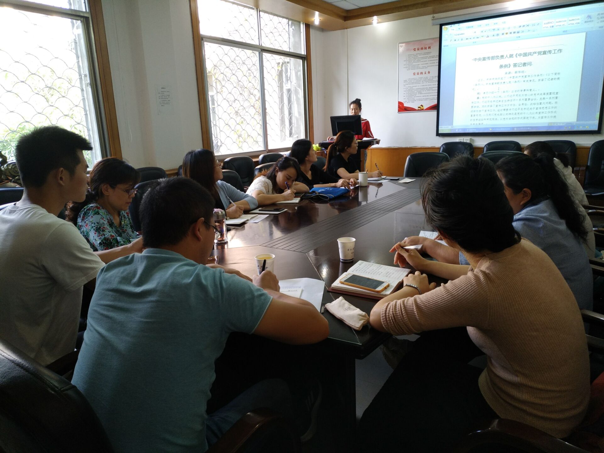 与会同志认真学习了中央宣传部负责人就《中国共产党宣传工作条例》答记者问、《关于深化新时代学校思想政治理论课改革创新的若干意见》、《中美贸易摩擦的缘起、影响和未来走向》、《直面现实 负重前行——党委书记朱业宏在中层干部培训研讨会上的讲话》、《不忘初心 牢记使命 扎实推进“双一流”建设——校长冯征在2019年暑期工作研讨会上的讲话》、《yl6809永利集团学院党政联席会议议事规则》与《yl6809永利集团二级党组织委员会议事规则(试行)》等内容。