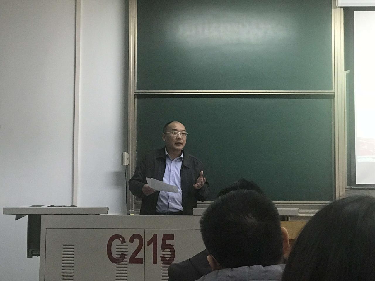 在13教C215教室,副院长蔡昌新与研究生党支部分享了自己的学习心得,蔡昌新从党的十九大主题“不忘初心,方得始终”出发,为研究生支部党员讲述了 “初心和使命”的含义:为中国人民谋幸福,为中华民族谋复兴。他强调党员应加深对习近平新时代中国特色社会主义思想和党中央大政方针的理解,学深悟透、融会贯通。
