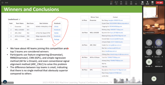 10月10日至11日,由岩石物理数据驱动分析特别兴趣小组(PDDA SIG)主办的 SPWLA 主题机器学习会议在美国得克萨斯州休斯敦召开。本次会议采用线上线下结合的方式,邀请了来自美国、加拿大、韩国等多个国家的多名专家学者作大会主题报告。“All For A Dream”作为获胜队伍应邀参加会议,围绕会议主题“Depth Matching, Well Log Alignment and Depth shift(深度匹配、测井曲线对齐和深度偏移)”对获奖成果进行了展示。2022级研究生柯宇欣以“Evaluation of fracturing effect of tight reservoirs based on deep learning(基于深度学习的致密储集层压裂效果评价)” 为题作口头报告,并与参会专家和学者进行了深入交流。