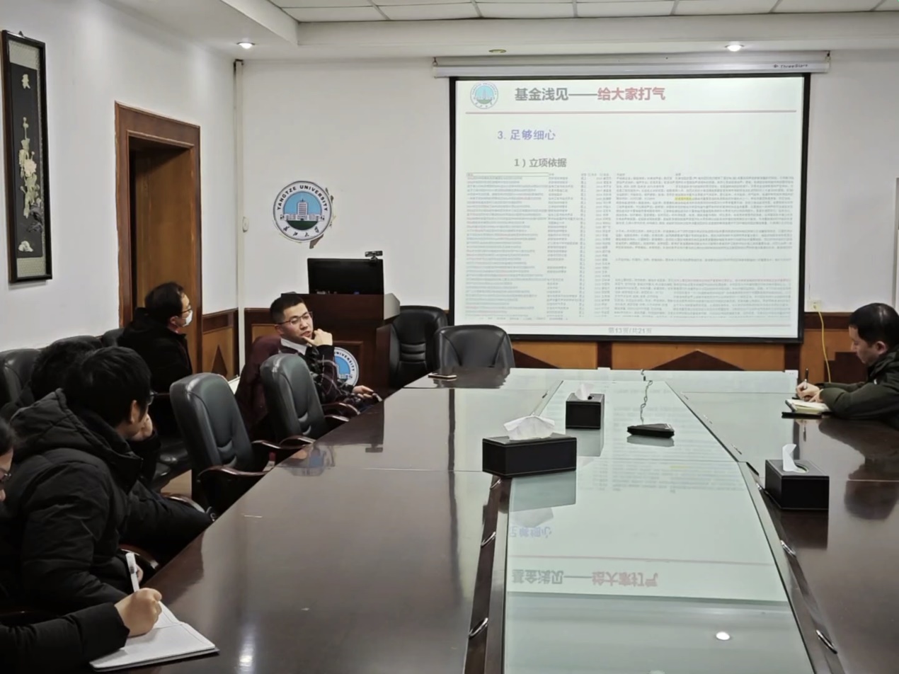 2024年1月4日下午四点,我院科研教师在10教205会议室听取了周箩鱼老师的基金申请经验报告会。本次会议由分管领导魏勇副院长主持,黑创、孙长河、甘如饴、何小英、胡洲、杨旭辉等10余名中青年教师参会。