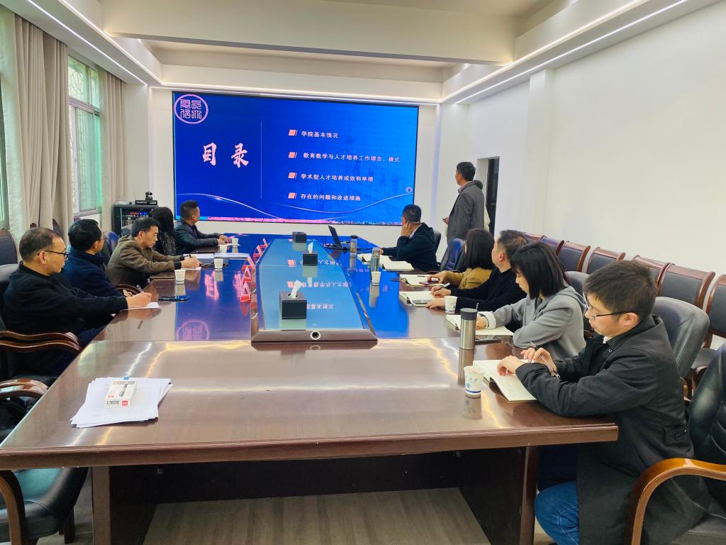 会议伊始,院长助理蒋涛介绍莅临本次工作会议的各相关负责人及专家组人员。会上,院长罗明璋从学院基本情况、教育教学与人才人才培养工作理念和模式、学术型人才培养成效和举措、存在问题和改进措施等方面对学院的本科教育教学审核评估自评自建工作进行了介绍。