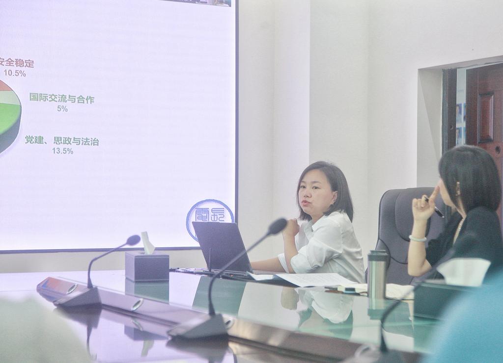 党委副书记张晨露围绕“如何将学生工作融入人才培养全过程”阐述对学院学生工作的思考。她介绍了学院学生工作团队和学生工作品牌建设情况,围绕党建引领、学风建设、生涯规划等方面,突出了学生工作抓牢主线、围绕中心、服务大局的目标追求,并阐明了下一阶段努力的方向。