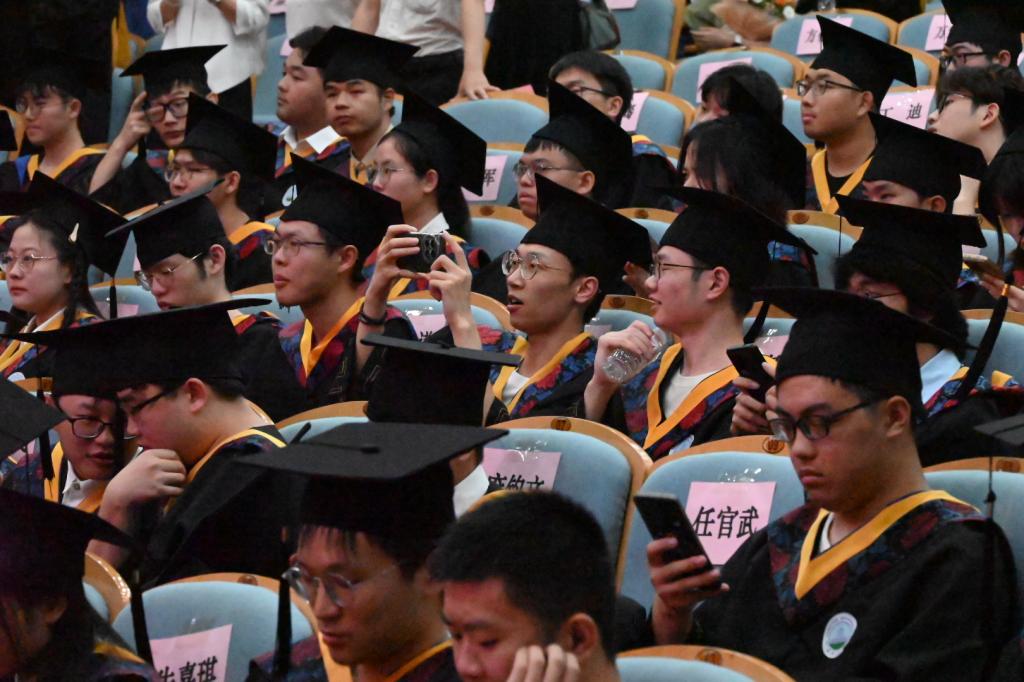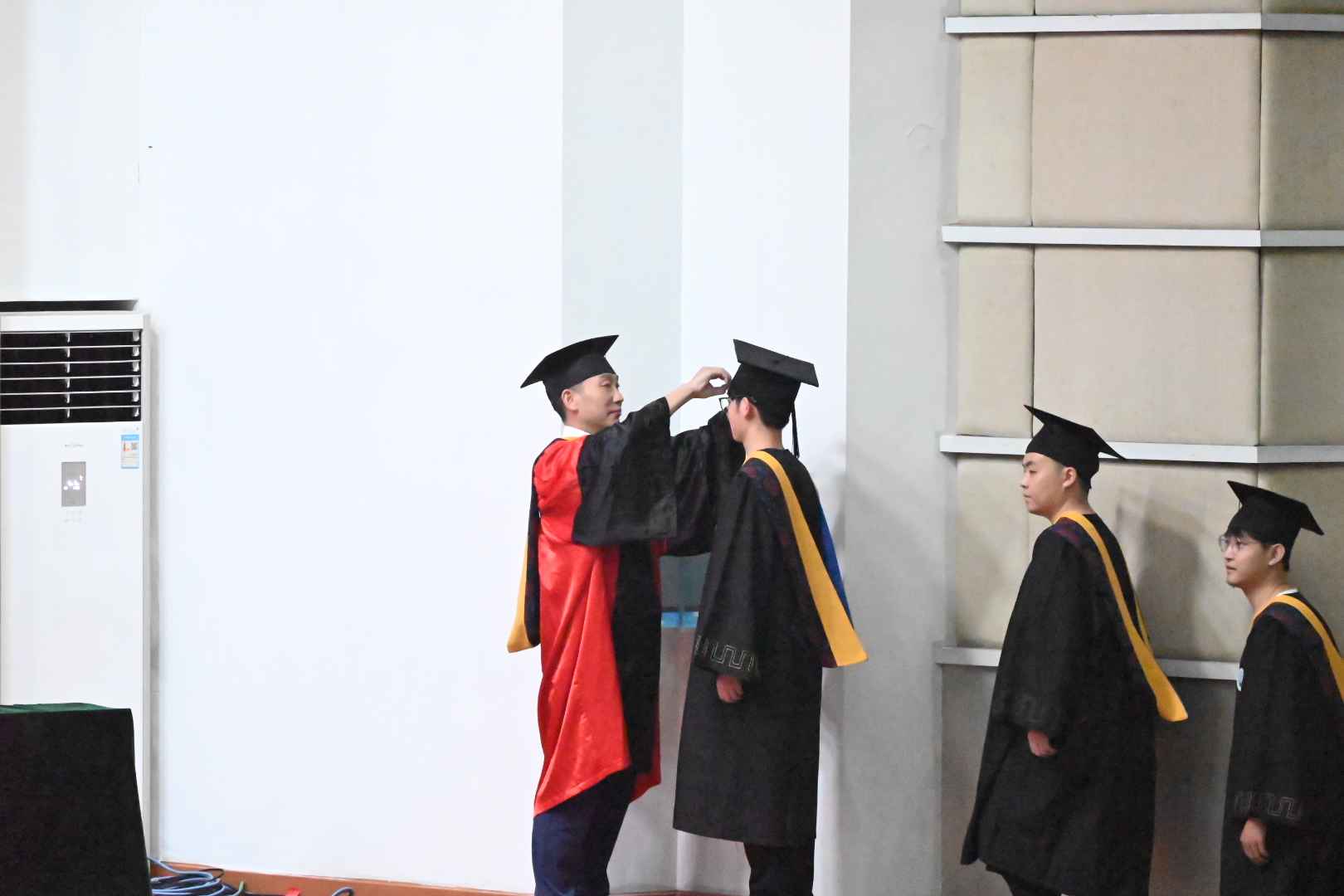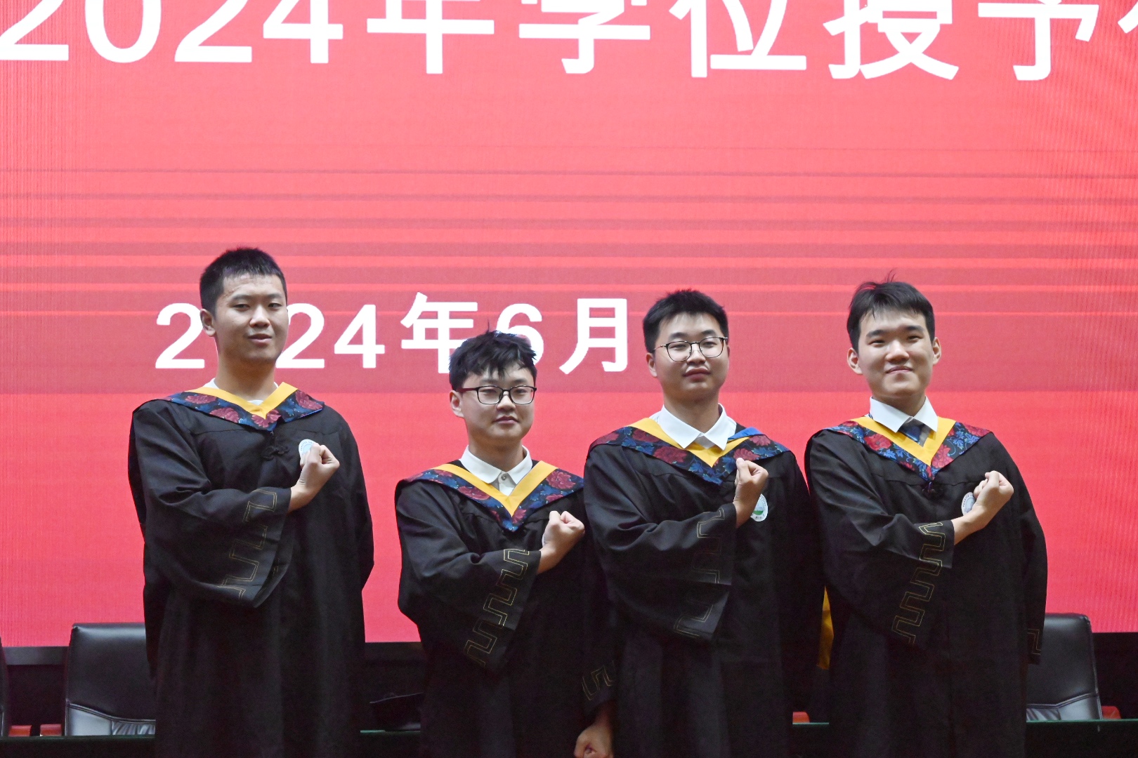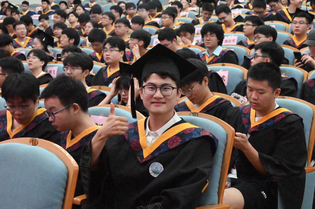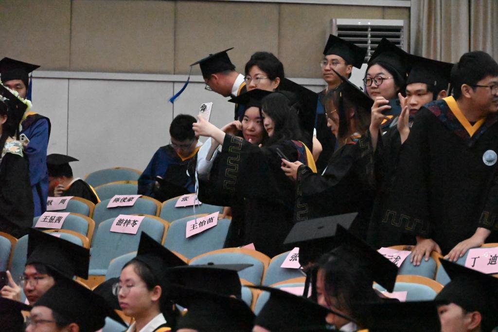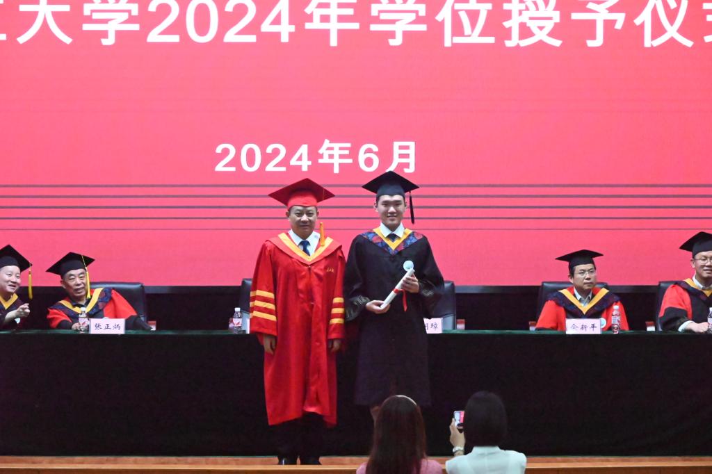 6月17日晚,学院在12教405报告厅隆重举行2024年学位授予仪式。党委常委、党委组织部部长、党委统战部部长李应军,院长罗明璋,副院长魏勇、蒋涛,党委副书记张晨露,以及导师代表张正炳教授、佘新平教授莅临现场,学院全体辅导员、毕业生家长代表参加典礼,240余名博士、硕士和本科毕业生代表齐聚一堂,在师长亲友的共同见证下,拨穗正冠,开启人生新篇章。