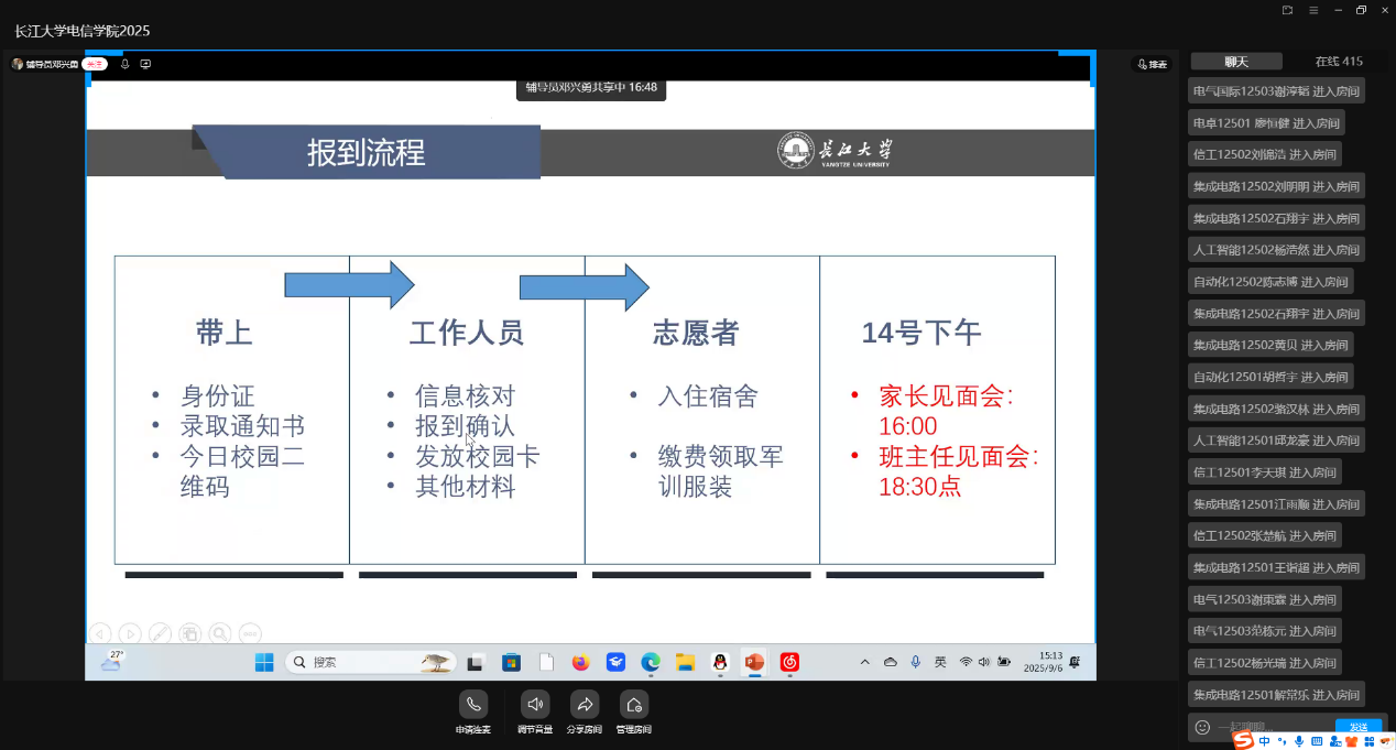 迎新当晚,班主任主持召开了第一次新生班会。班会上,班主任对同学们的到来表示热烈欢迎,并围绕校纪校规、专业认知、学业规划、校园安全、大学生活适应等方面进行了初步的讲解和引导。新生们通过有趣的破冰活动进行了自我介绍,迅速拉近了彼此的距离。班会的成功举行,不仅增强了班级的凝聚力,也让新生们对即将开始的大学生活有了更清晰的认识和期待。
