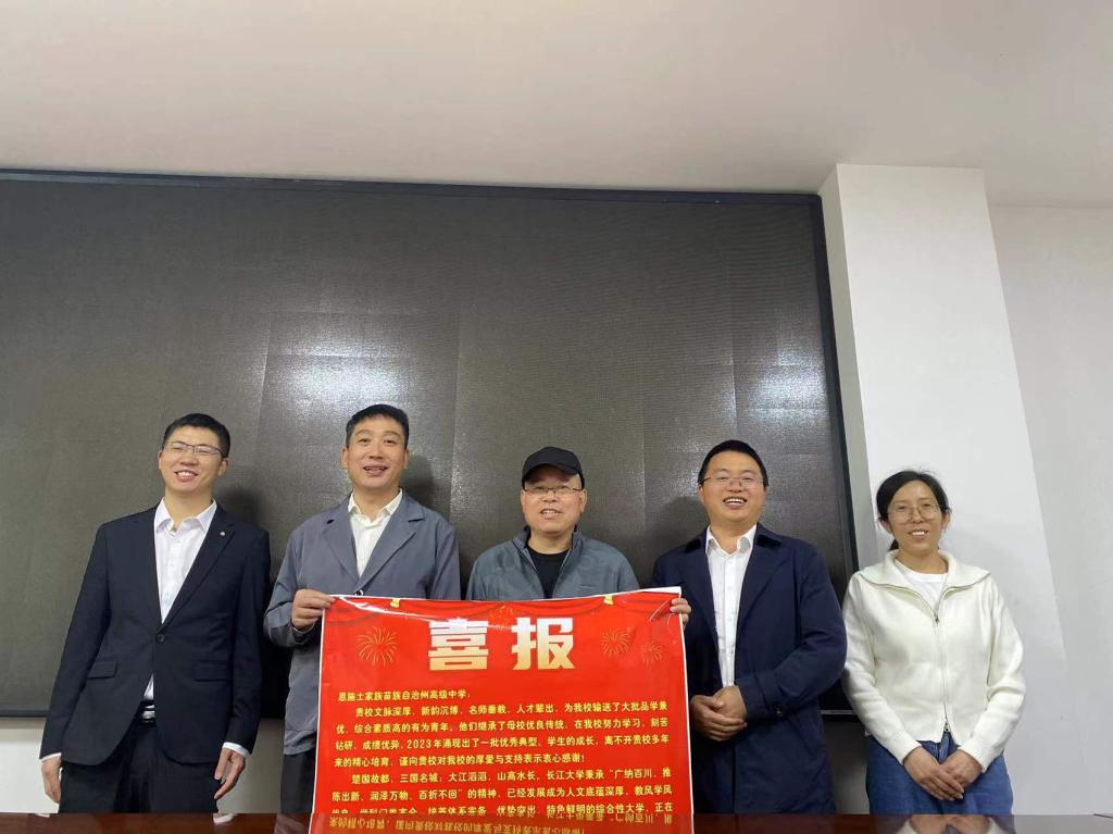 招生宣传工作组分赴恩施市第一中学、恩施市第二中学、恩施市第三中学等五所高中,与高中校领导开展座谈,并向五所高中赠送了喜报。座谈会上工作组详细介绍了yl6809永利集团的发展情况、办学特色和招生政策,对五所高中为我校输送大批优秀学子表示感谢,希望双方进一步深化交流与合作,共同努力为国家培养优秀人才。